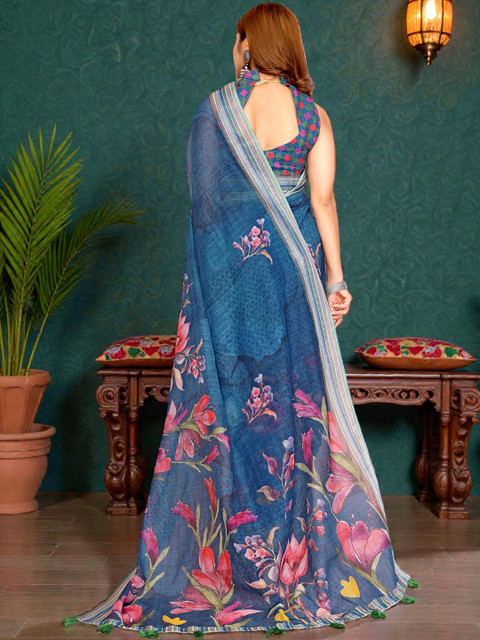 The blouse worn by the model might be for modelling purpose only. Check the image of the blouse piece to understand how the actual blouse piece looks like.