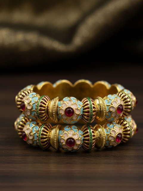 Be the first to review “PANASH Set of 2 24k Gold-Plated Stones-Studded Bangle”