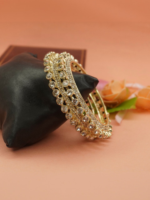Set of two gold-plated bangles, each has white crystal stone studded details, secured with slip-on closure