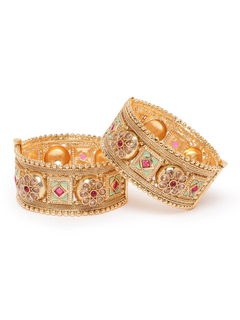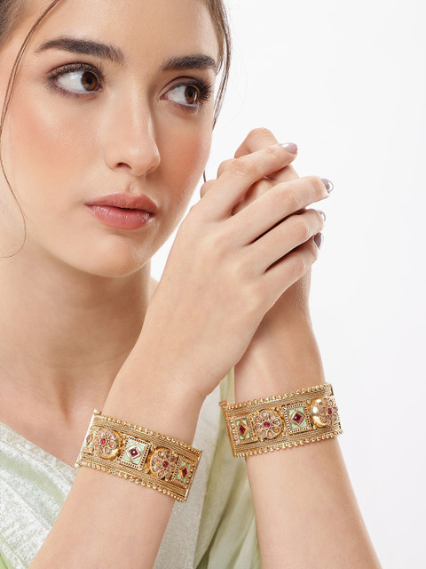 3 reviews for Panini jewels Set Of 2 Gold-Plated Ruby-Studded & Beaded Openable Designer Bangles