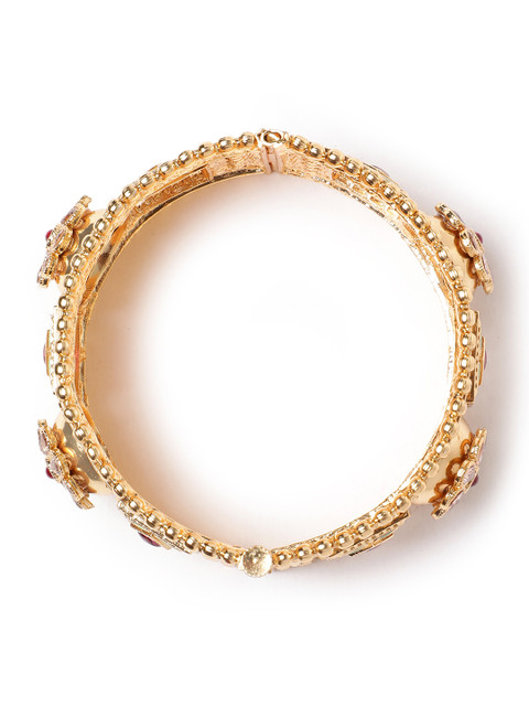 Gold-plated bangles has ruby-studded & beaded details, each secured with screw closure