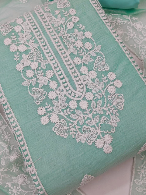 Blue embroidered unstitched dress material