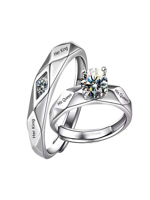 PASU FASHION Set Of 2 Silver Plated Crystals Stones Studded Adjustable Couple Finger Rings