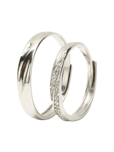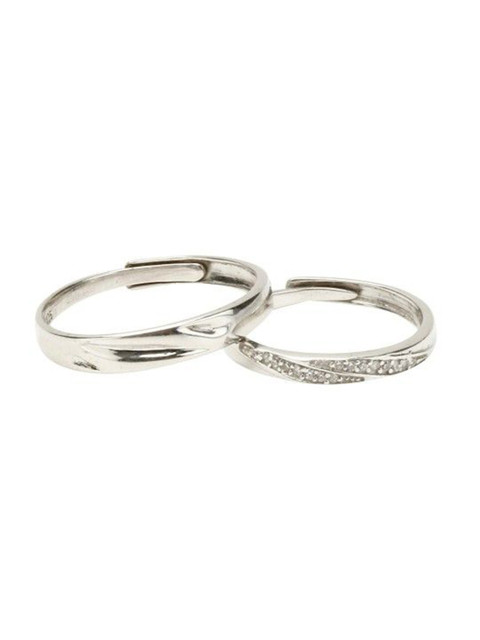 Silver-toned Adjustable Couple Finger Ring, artificial stones studded, silver plated