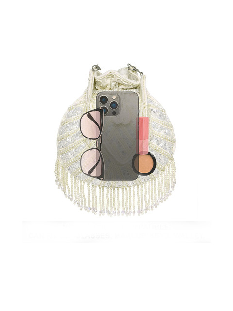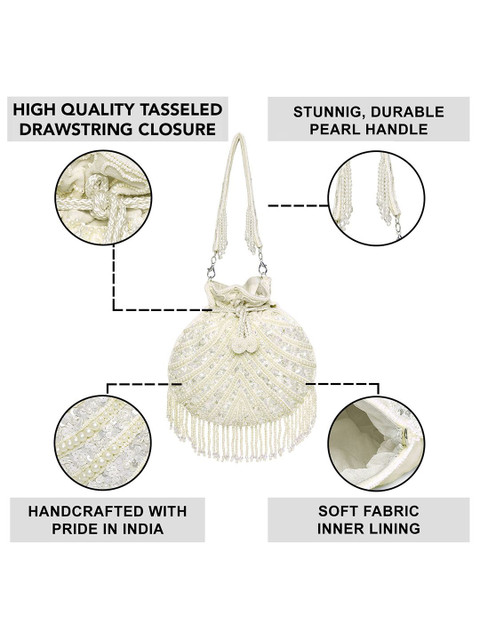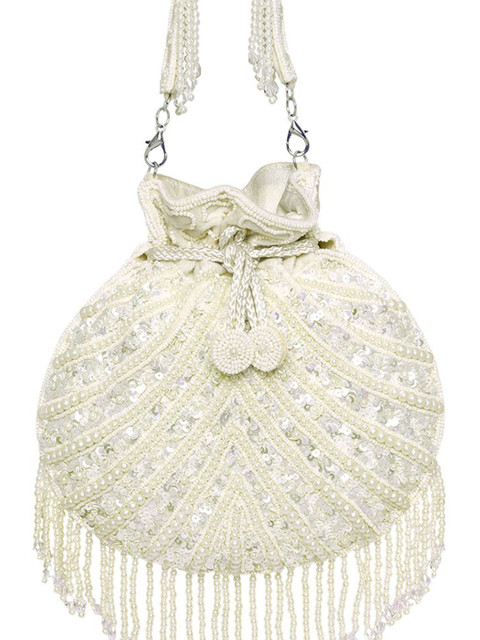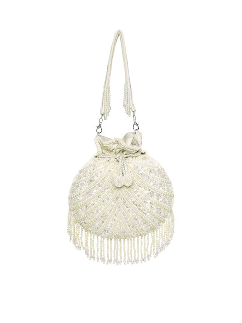 White and gold-toned embellished potli clutches