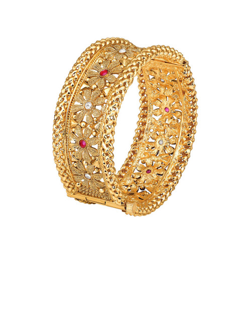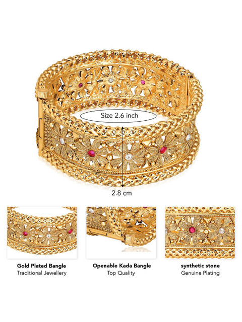 Gold-plated bangles, has pink stone-studded details, secured with screw closure
