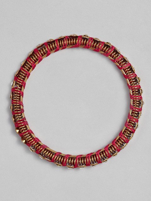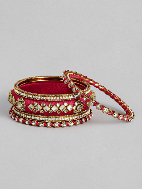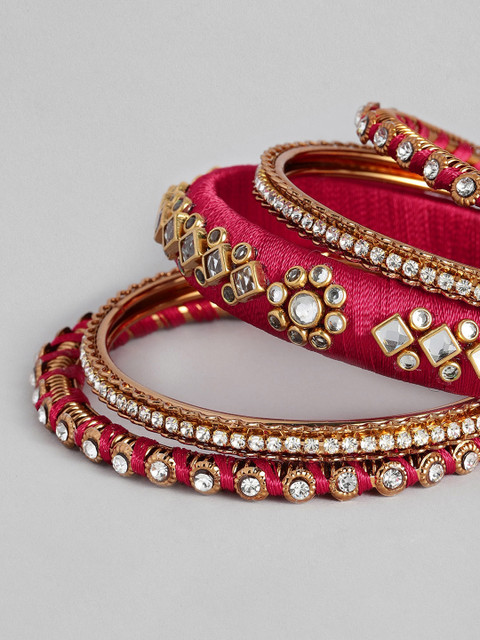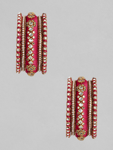 Set Of 10 pink gold plated Velvet Matching Fancy Silk Thread Bangles