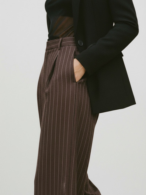The timeless striped pattern offers versatile styling options, pairing effortlessly with solid tops or blazers. They are an essential foundational piece for achieving a contemporary look that feels effortlessly put-together.