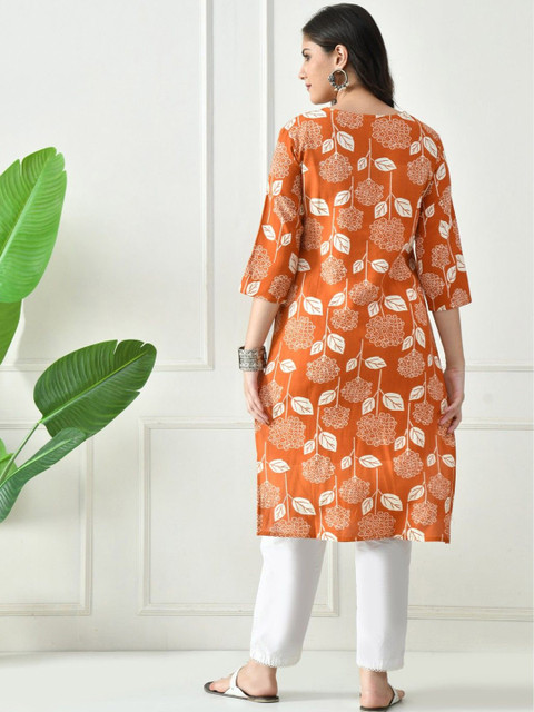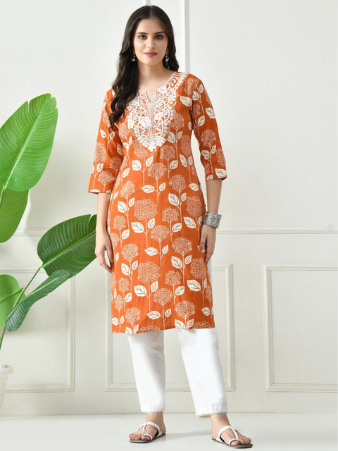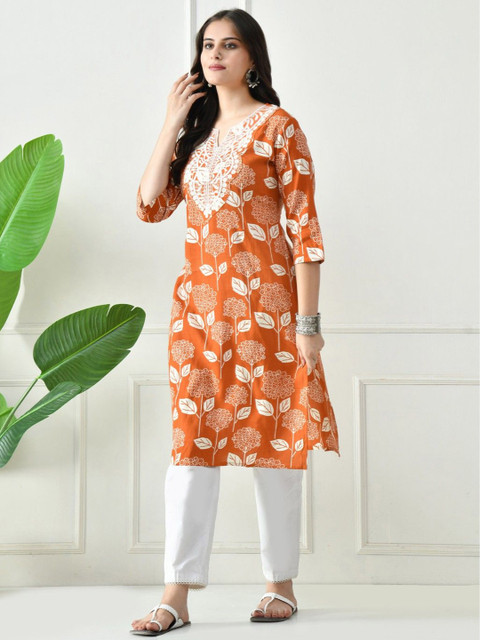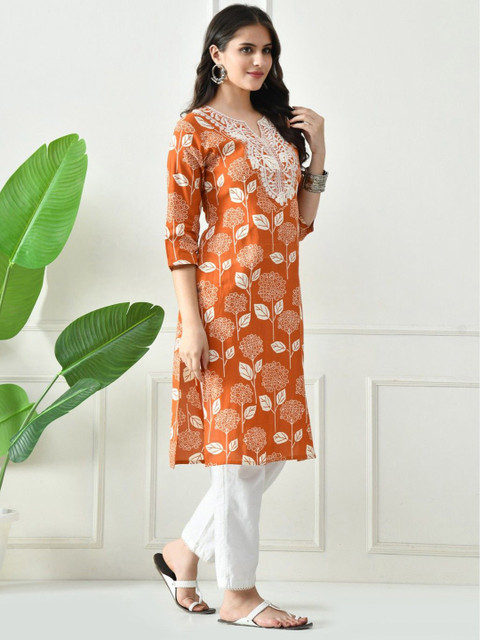 Orange & White Straight kurta for Women