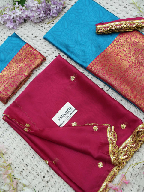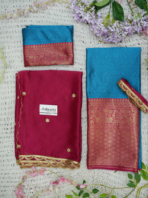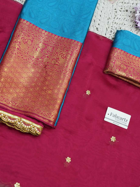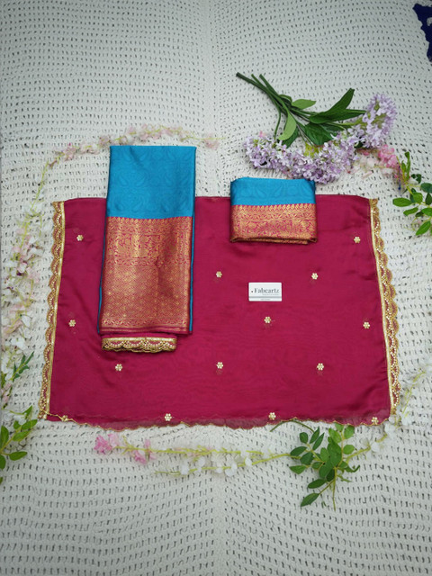 Blue Embellished Ready to Wear blouse, has a Boat Neck, Short Sleeves, Blue Embellished Ready to Wear lehenga, Flared hem