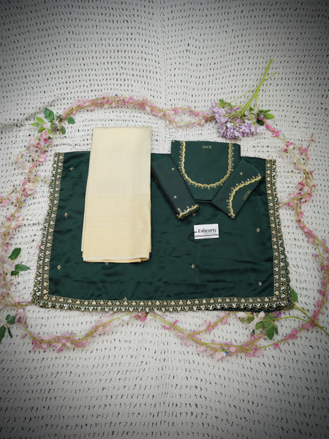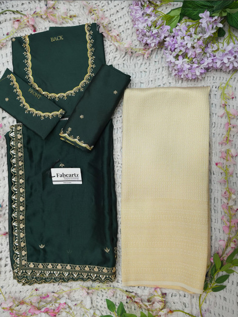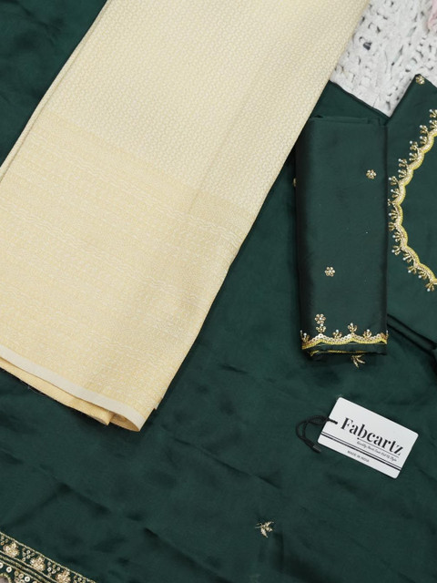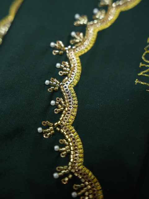 Green Embellished Semi-Stitched blouse, has a Round Neck, Short Sleeves, Green Embellished Semi-Stitched lehenga, Flared hem