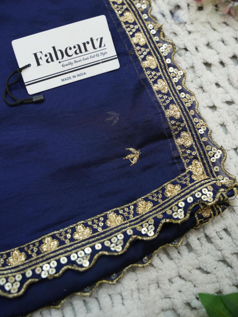 Blue Embellished dupatta, Taping border