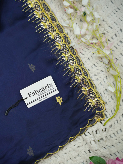 Navy Blue Embellished dupatta, Taping border