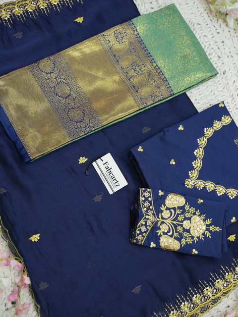 Navy Blue Embroidered lehenga choli With Dupatta, Sequinned