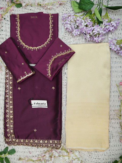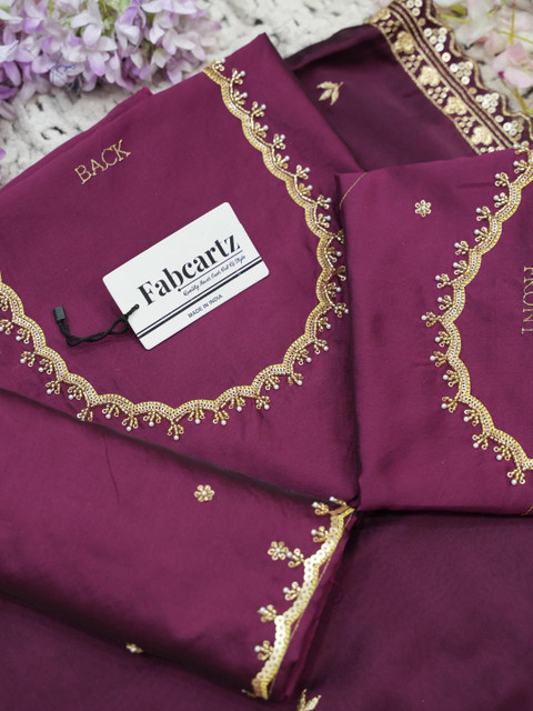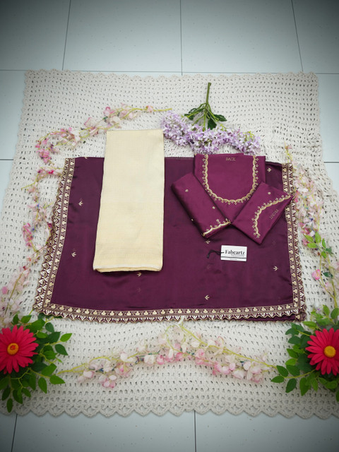 Maroon Embroidered Semi-Stitched blouse, has a Round Neck, Short Sleeves, Maroon Embellished Semi-Stitched lehenga, Flared hem