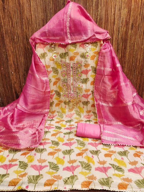 Pink Soft Silk Sequence Embroidery Work Unstitched Dress Material