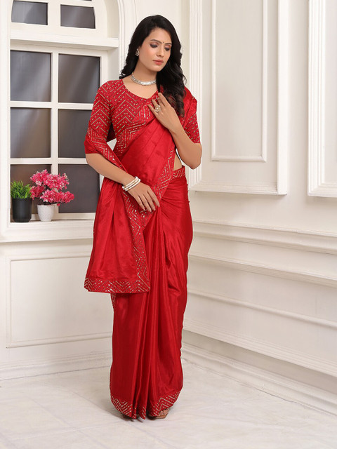 The blouse worn by the model might be for modelling purpose only. Check the image of the blouse piece to understand how the actual blouse piece looks like.