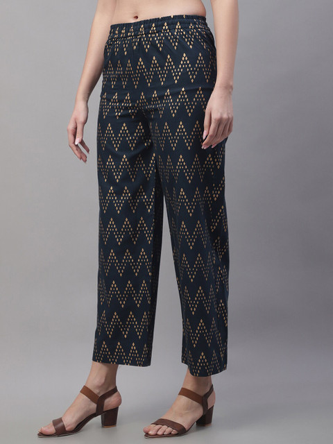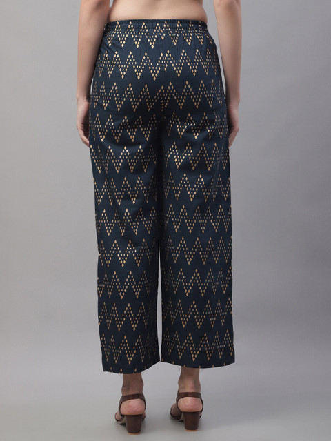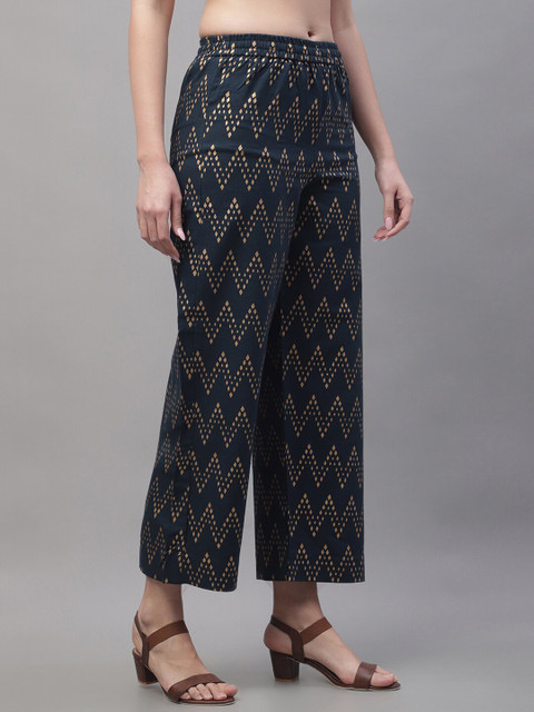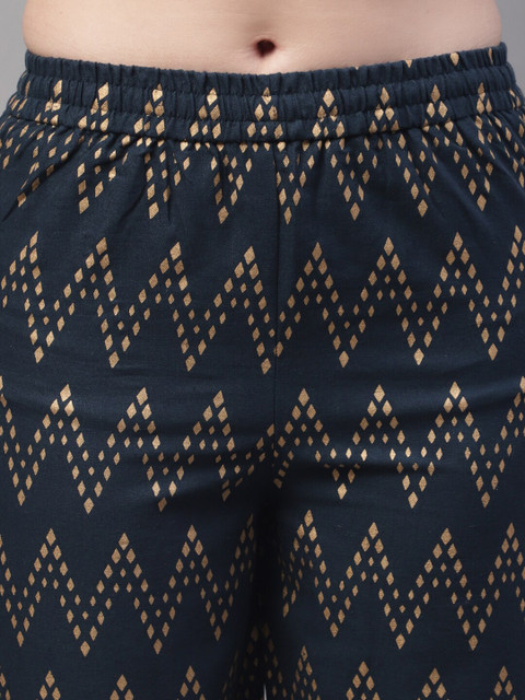- Navy blue and gold-toned woven palazzos