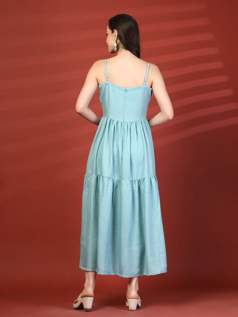 - Blue and blue solid a-line dress