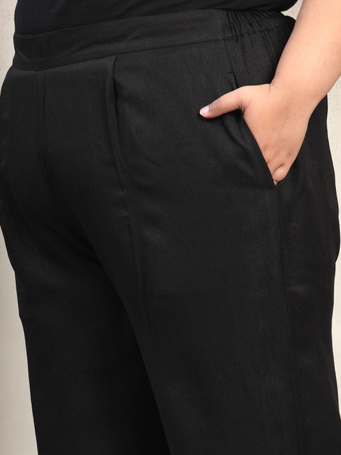 Black soild trousers, has an elasticated waistband with slip-on closure