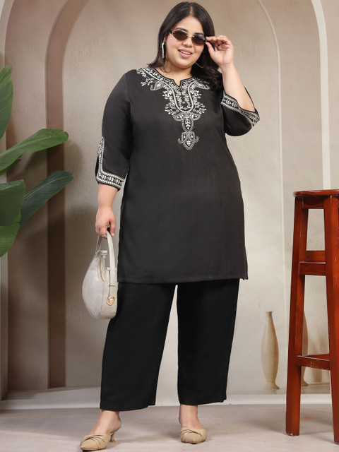 plusS Embroidered Round Neck Long Sleeves Tunic & Trousers Co-Ords