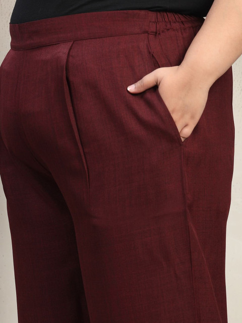Maroon soild trousers, has an elasticated waistband with slip-on closure with two pockets