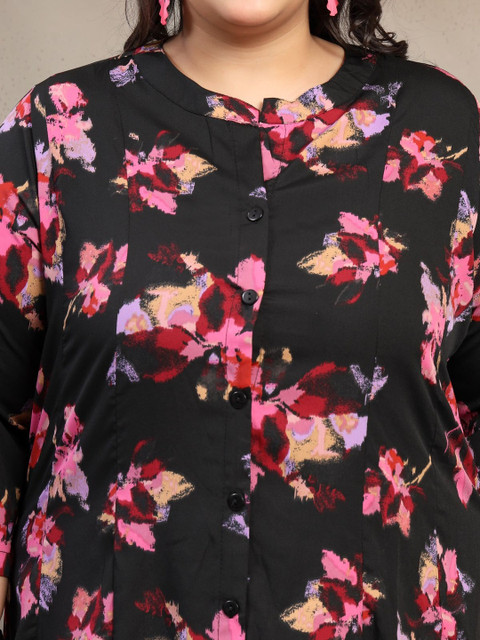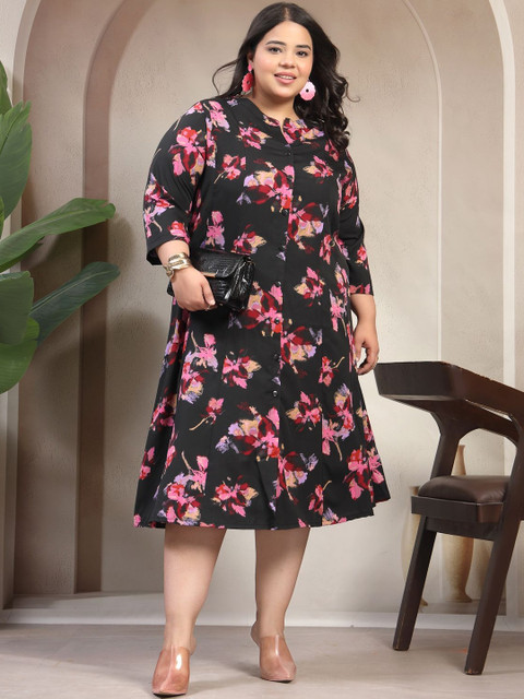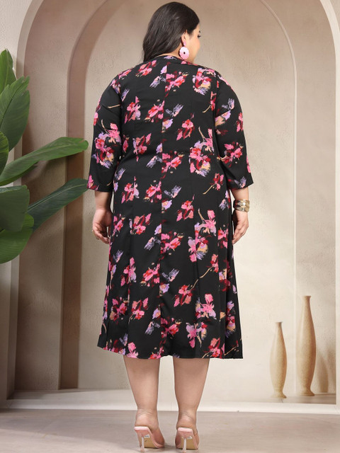 - Black and black floral print a-line dress