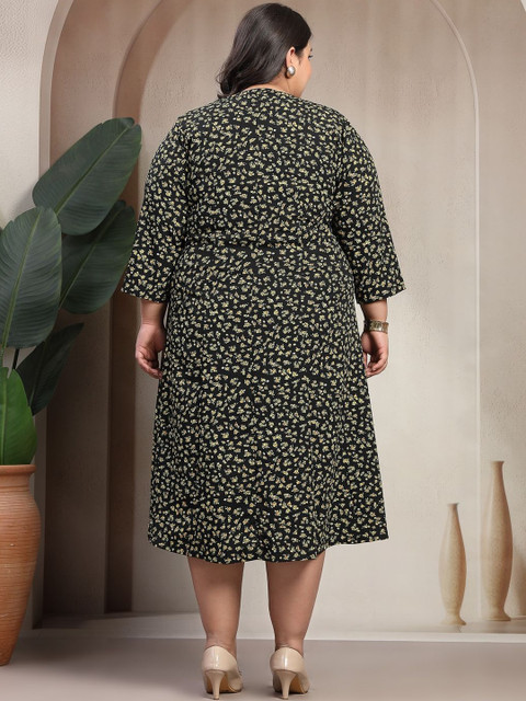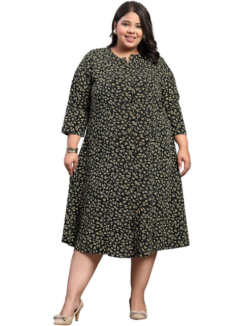 - Black and yellow floral printed a-line dress