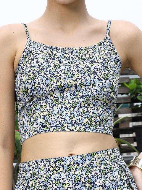 Green and white printed top, has a shoulder starp neck and sleeveless