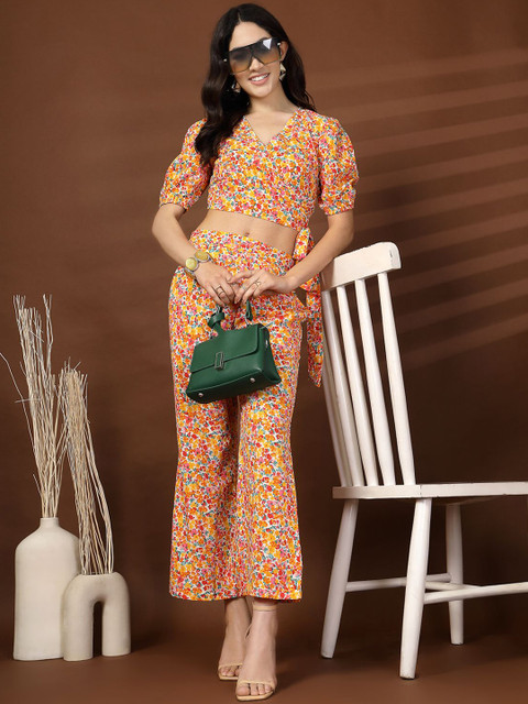 Printed v nice crop top & palazzo set quality is good fitting is perfect go for it guys worth it delivery is on time packaging is also good π