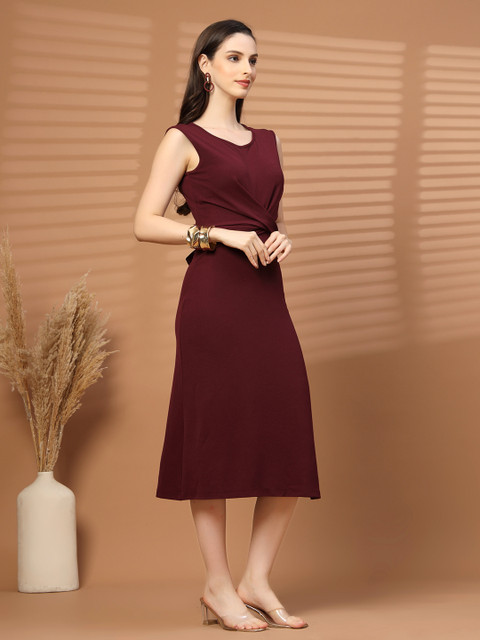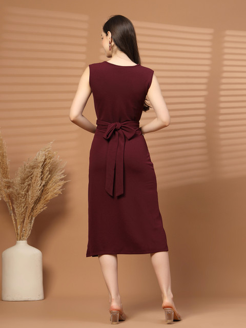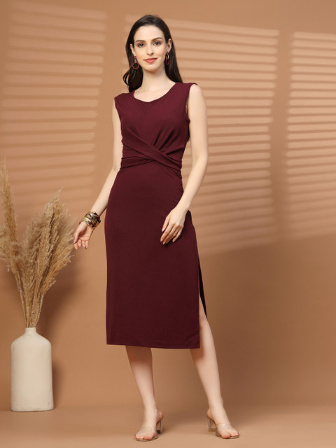 - Maroon and maroon solid sheath dress