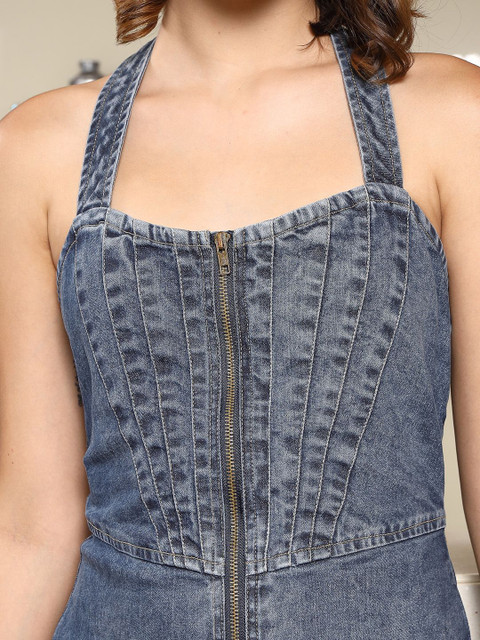 - Blue solid a-line dress