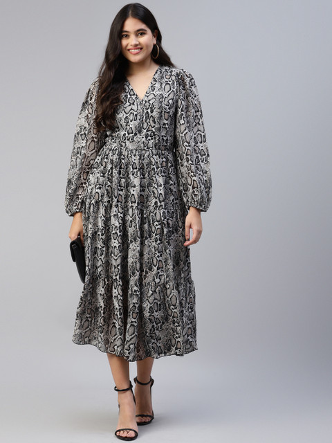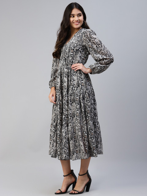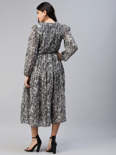 - Black animal print fit & flare dress