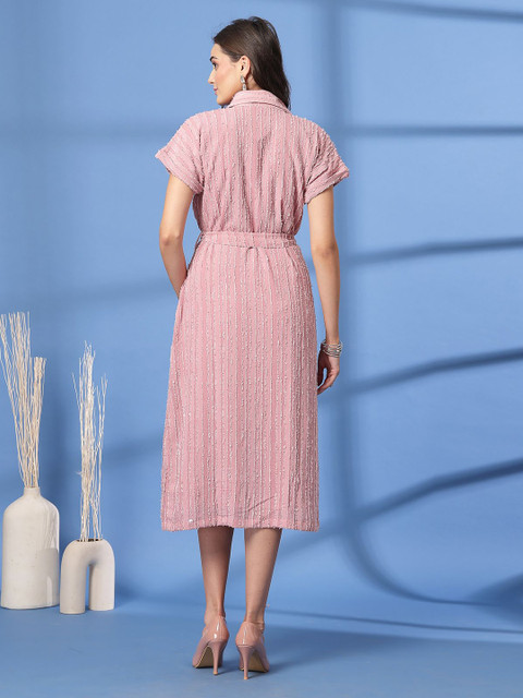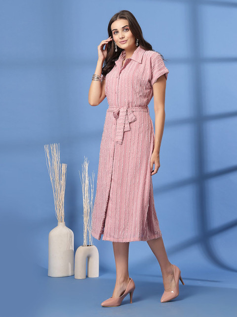 • Pink solid fit & flare dress