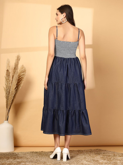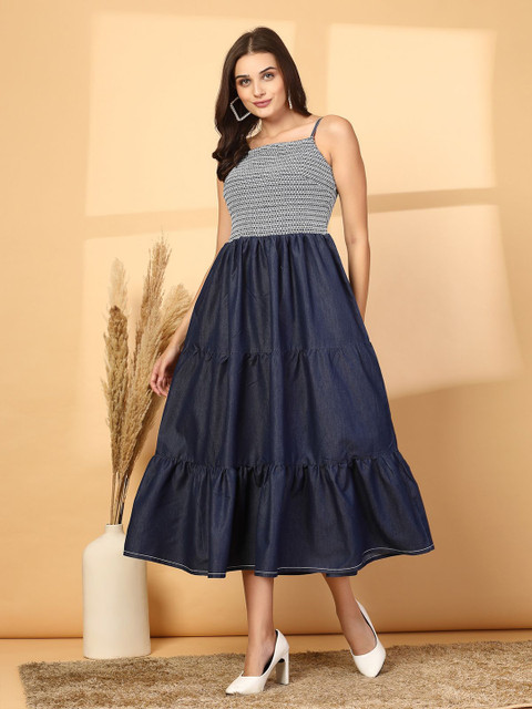 - Blue solid fit & flare dress