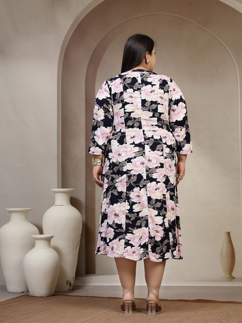 3 reviews for plusS Women Floral Printed A-Line Midi Dress