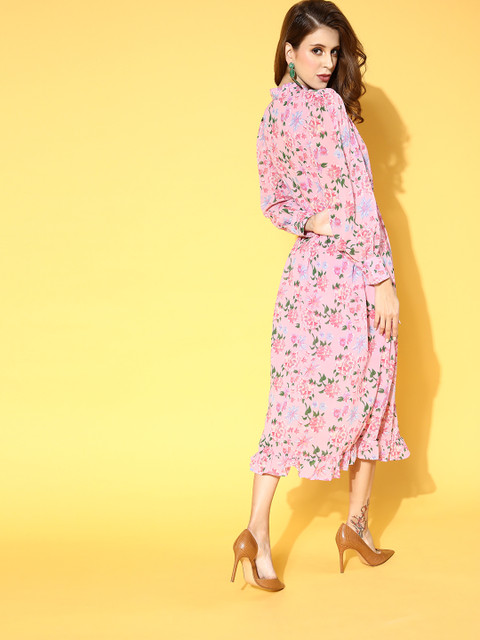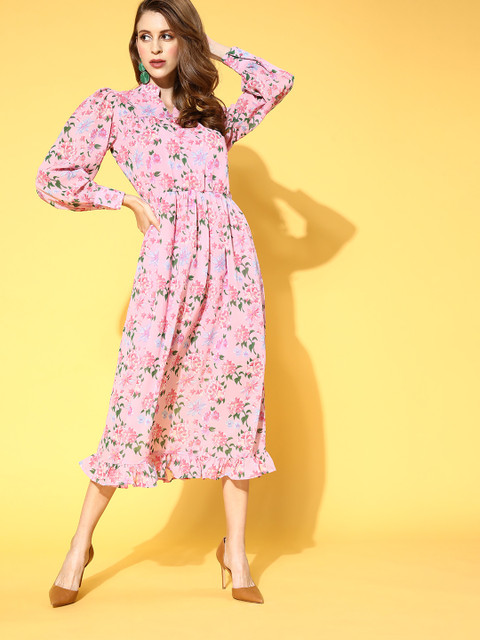 Look feminine and chic by donning this alluring dress to your next outing. Crafted with a floral print and mandarin collar, this dress is sure to elevate your appeal.