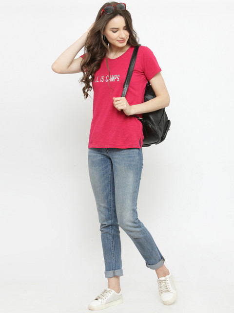 Liven up your warm-weather wardrobe with this high-fashion tee designed by plusS. Style this pink piece with tonal shorts and chic sandals when you’re going on a picnic date.