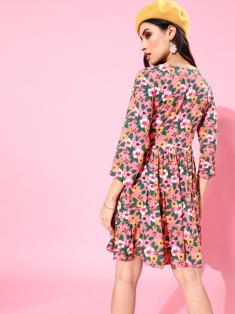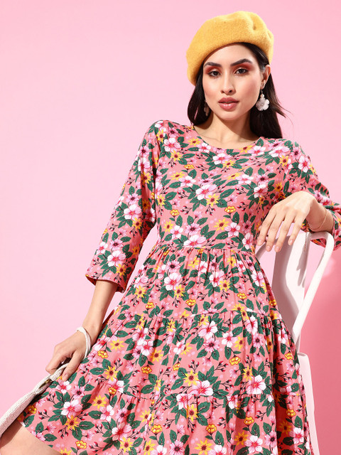 Bring on bold and fresh style with this chic dress. It is exquisitely designed with a floral print and three-quarter regular sleeves for the perfect look and fit.