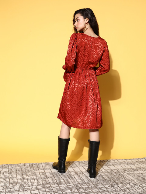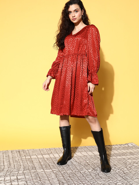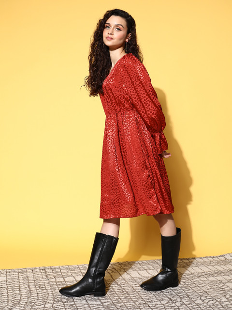 Slip on this stylish dress and take a twirl to make heads turn. Sporting an abstract pattern and a stylish V-neck, it will keep you relaxed throughout the wear.