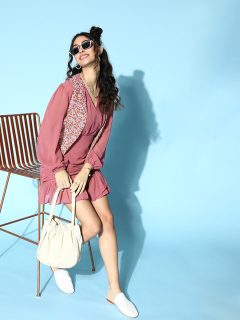 Add a touch of style to your everyday wear closet by opting for this fashionable dress. Crafted with an eye-catching solid pattern and V-neck, this dress will make you stand apart.