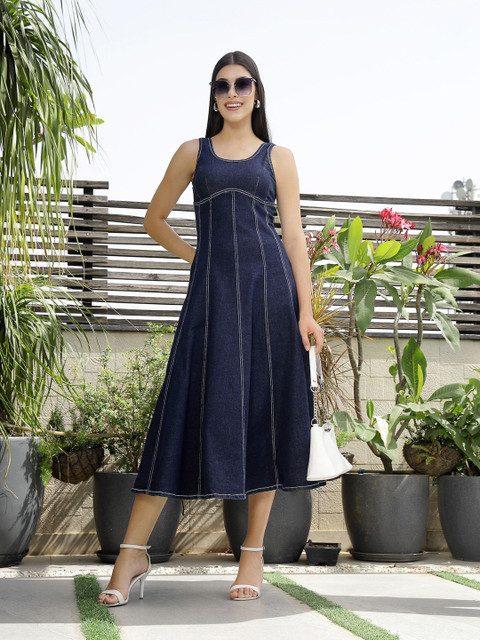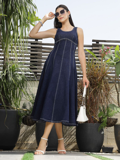 - Blue solid a-line dress