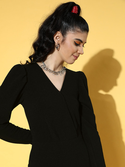 Look chic on every occasion in this gorgeous dress. It is crafted with an appealing solid pattern and lovely V-neck for added appeal.