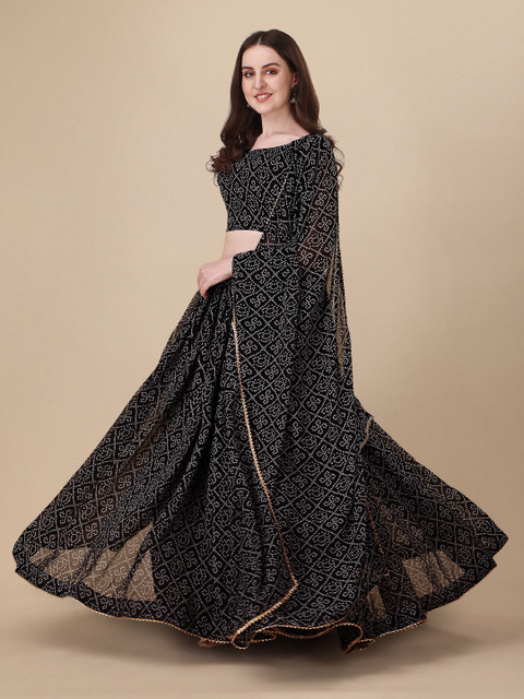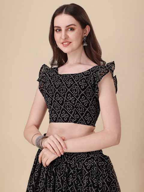 Black and white bandhani printed semi-stitched lehenga, flared hem