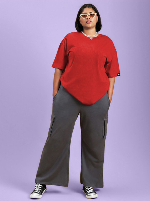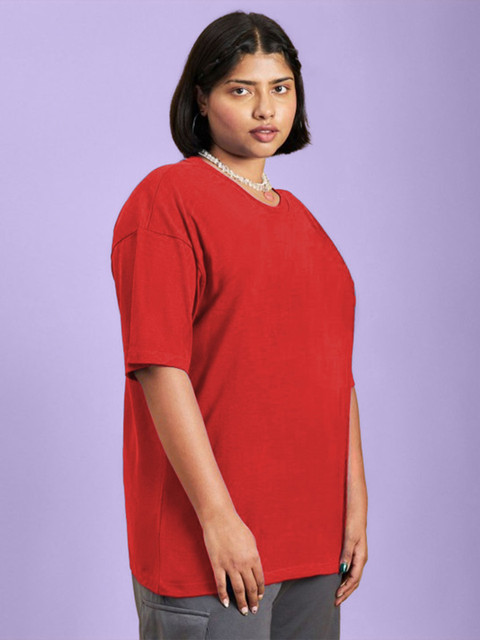 PockMAN Women Plus Size Bio Finish Solid Round Neck Cotton Oversized T-shirt