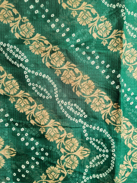Green bandhani dupatta, tasselled border