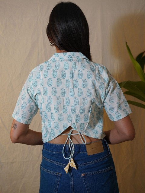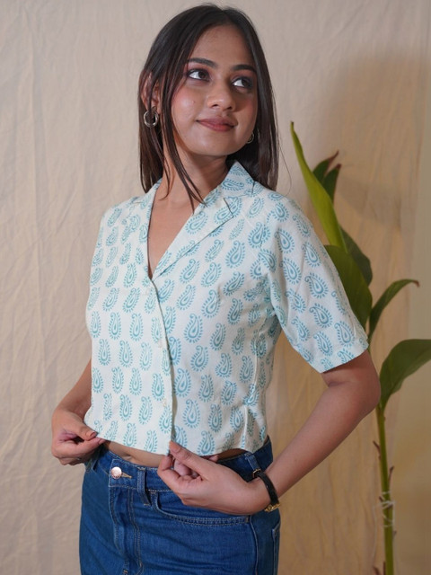 - Off White and Blue Crop Regular tops