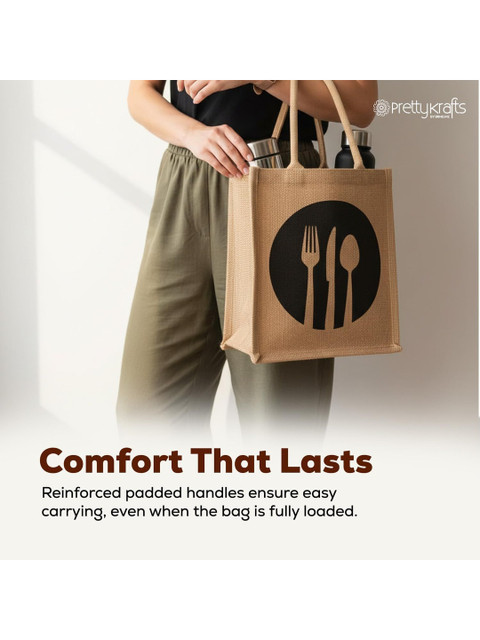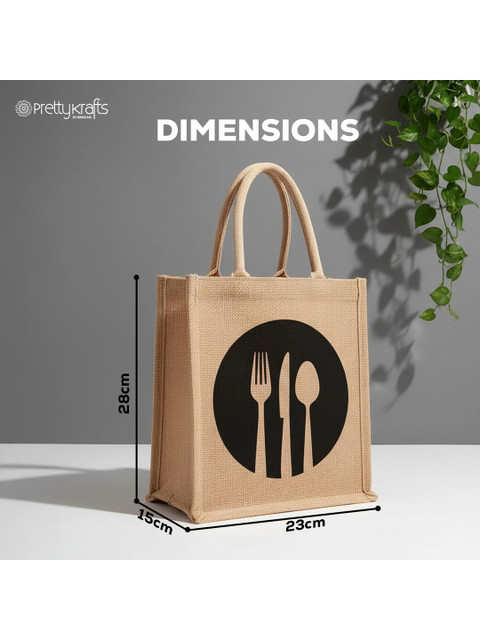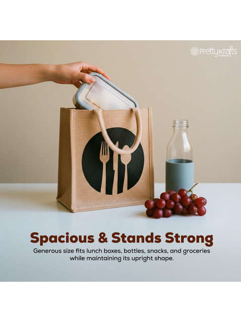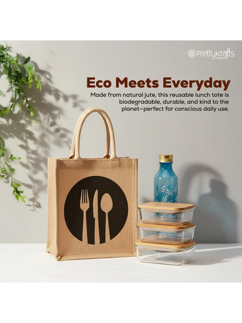 Prettykrafts Discover a smarter, eco-conscious way to carry your lunch. Our premium jute lunch bag blends earthy charm with urban utility the perfect companion for your daily meals. 100% Jute Crafted from biodegradable natural jute fibers that are durable and environmentally safe.