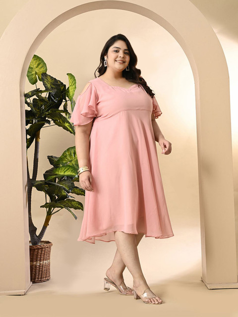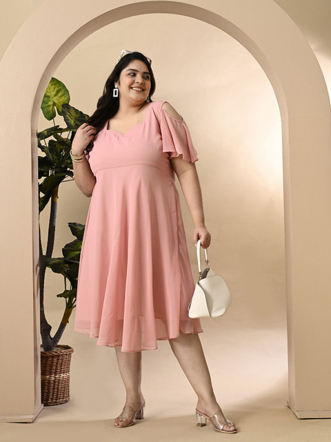 - Pink solid fit & flare dress