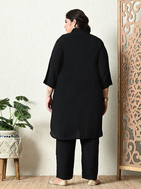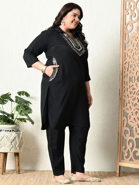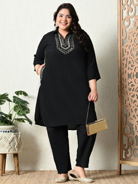 2 reviews for PrettyPlus by Desinoor.com Plus Size Embroidered Mirror Work Roman Silk Tunic With Trouser
